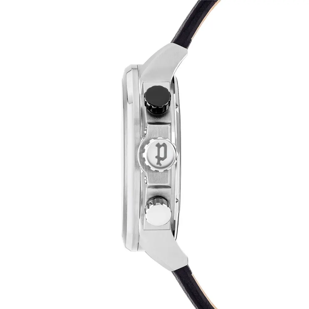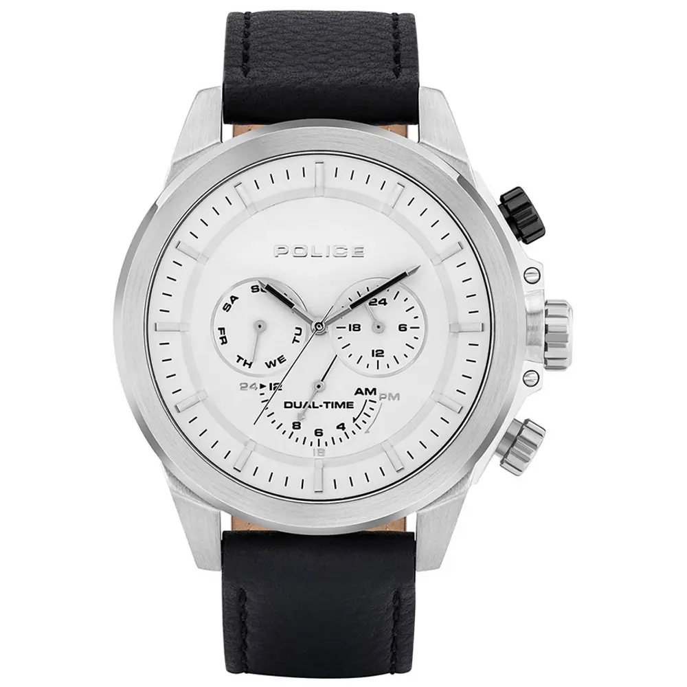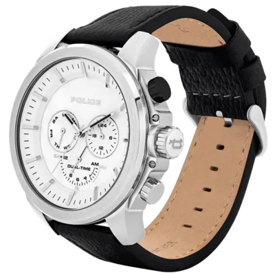 Multifunkcionalan muški ručni sat brenda Police iz kolekcije Belmont. Karakterišu ga istaknuti podbrojčanici na srebrnom kućištu, kao i visokokvalitetna crna kožna narukvica koja čini ovaj model pogodnim za svakodnevno nošenje.