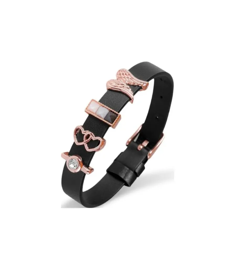 Ženska narukvica brenda P. Ricaud, napraljena od kože sa privescima koje lako možete kombinovati. Svi poseduju mogućnost skidanja sa narukvice.