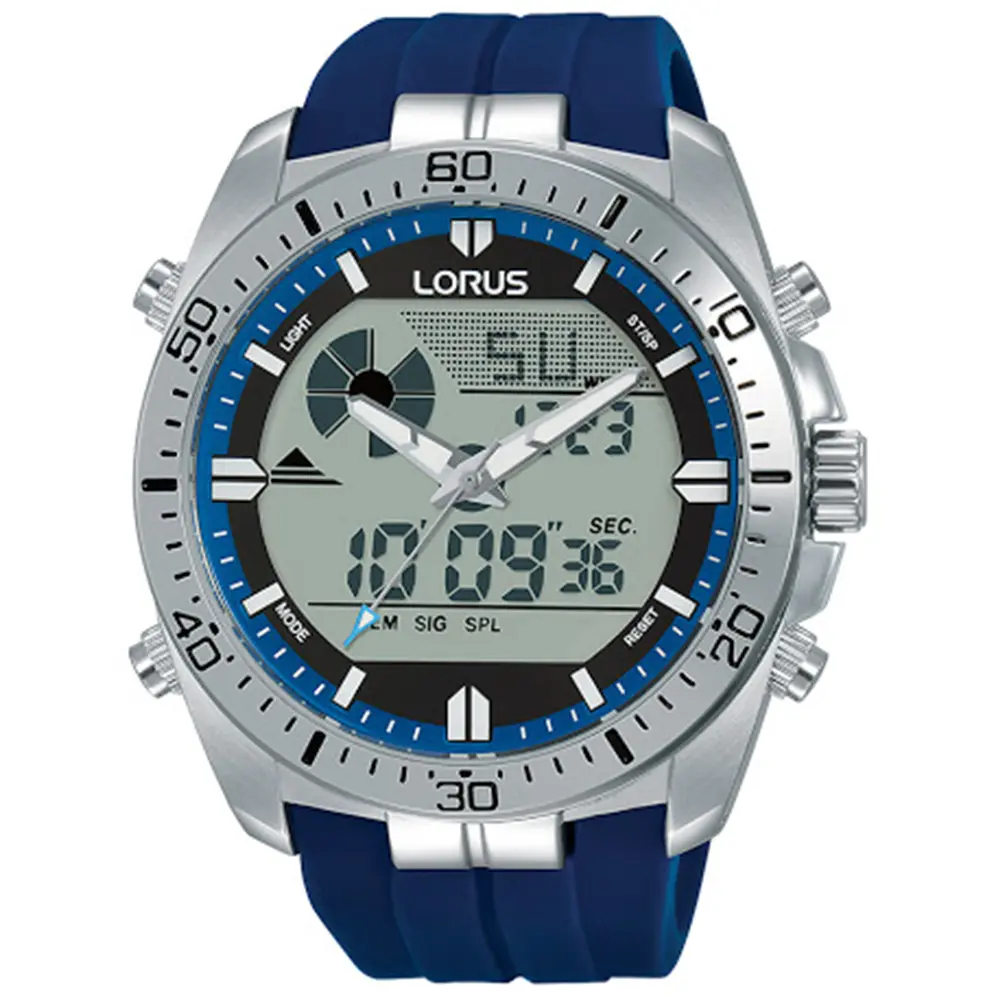 Sportski muški ručni sat predstavlja kombinaciju analognog i digitalnog sata. Srebrnog kućišta i na udobnoj plavoj cilikonskoj narukvici, idealan je za svakodnevno nošenje.Sadrži ojačano mineralno staklo otporno na ogrebotine.
