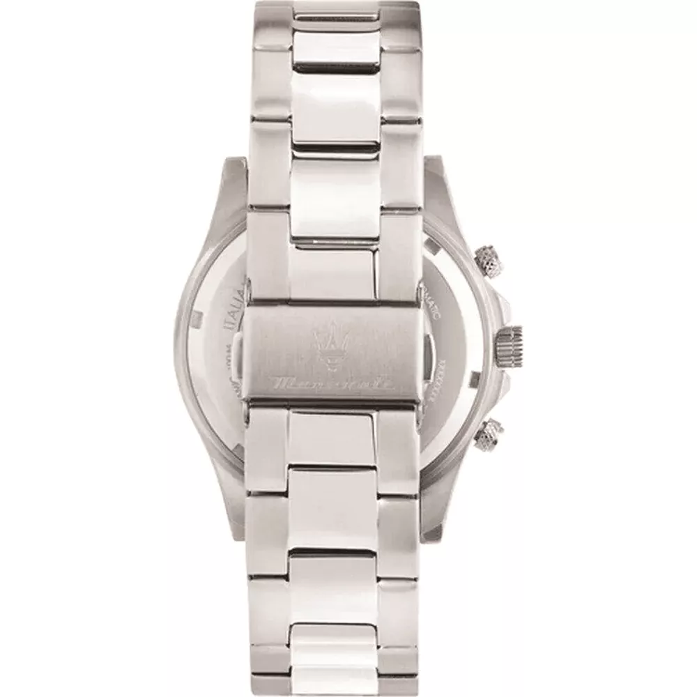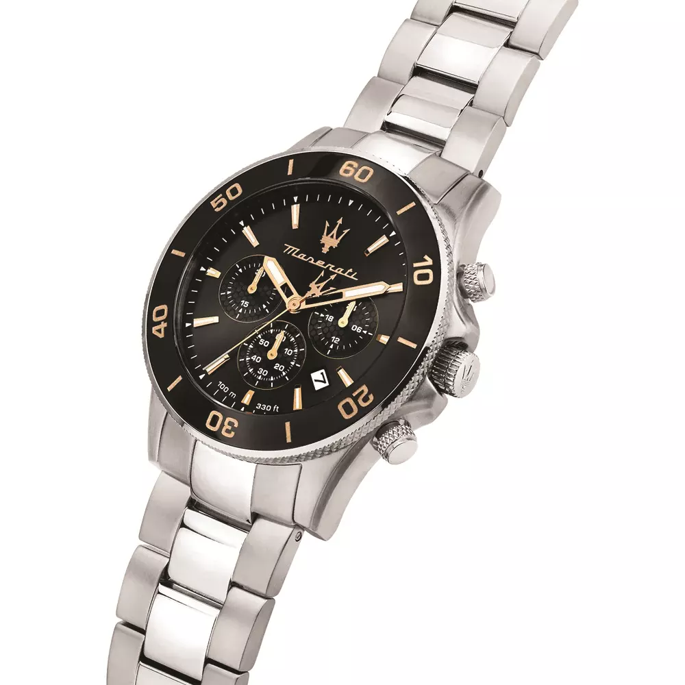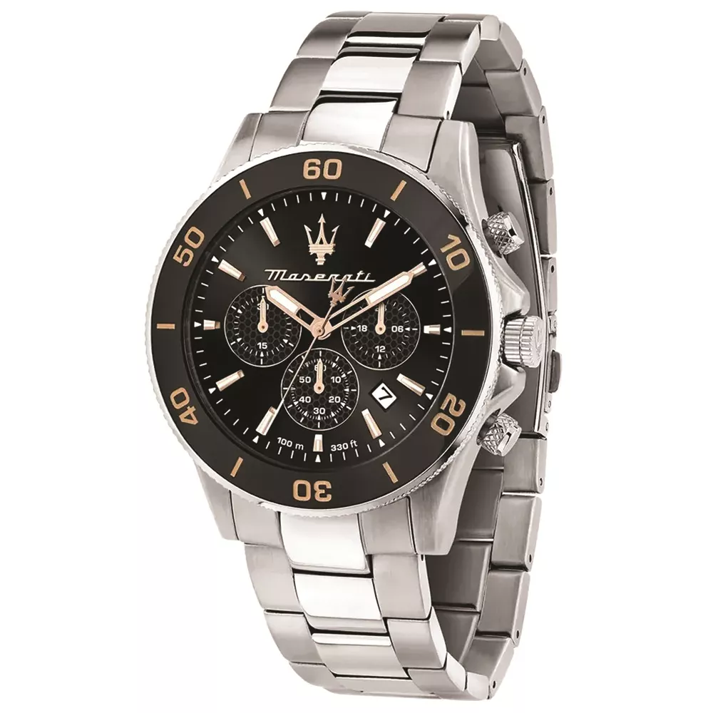 Maserati je italijanski luksuzni i eksluzivni brend koji se fokusira na kvalitet i dizajn osnovan 1914. godine. Ovaj Maserati sat iz kolekcije Competizione opremljen je Miyota kvarcnim mehanizmom. Sat je napravljen od nerđajućeg čelika, što obezbeđuje dugotrajnost i kvalitet. Narukvica od nerđajućeg čelika je sastavljena od više malih karika koje omogućavaju prilagođavanje veličine prema veličini zgloba. Sat je vodootporan do dubine od 100 metara (10 ATM). To znači da je sat otporan na plivanje i lagano ronjenje. Ipak, nije klasifikovan kao ronilački sat, stoga ne preporučujemo ronjenje dublje od 2 metra. Opremljen je mineralnim staklom. Poluprečnik kućišta je 43mm, a debljina 11mm , brojčanik u crnoj boji sa zlatnim detaljima.