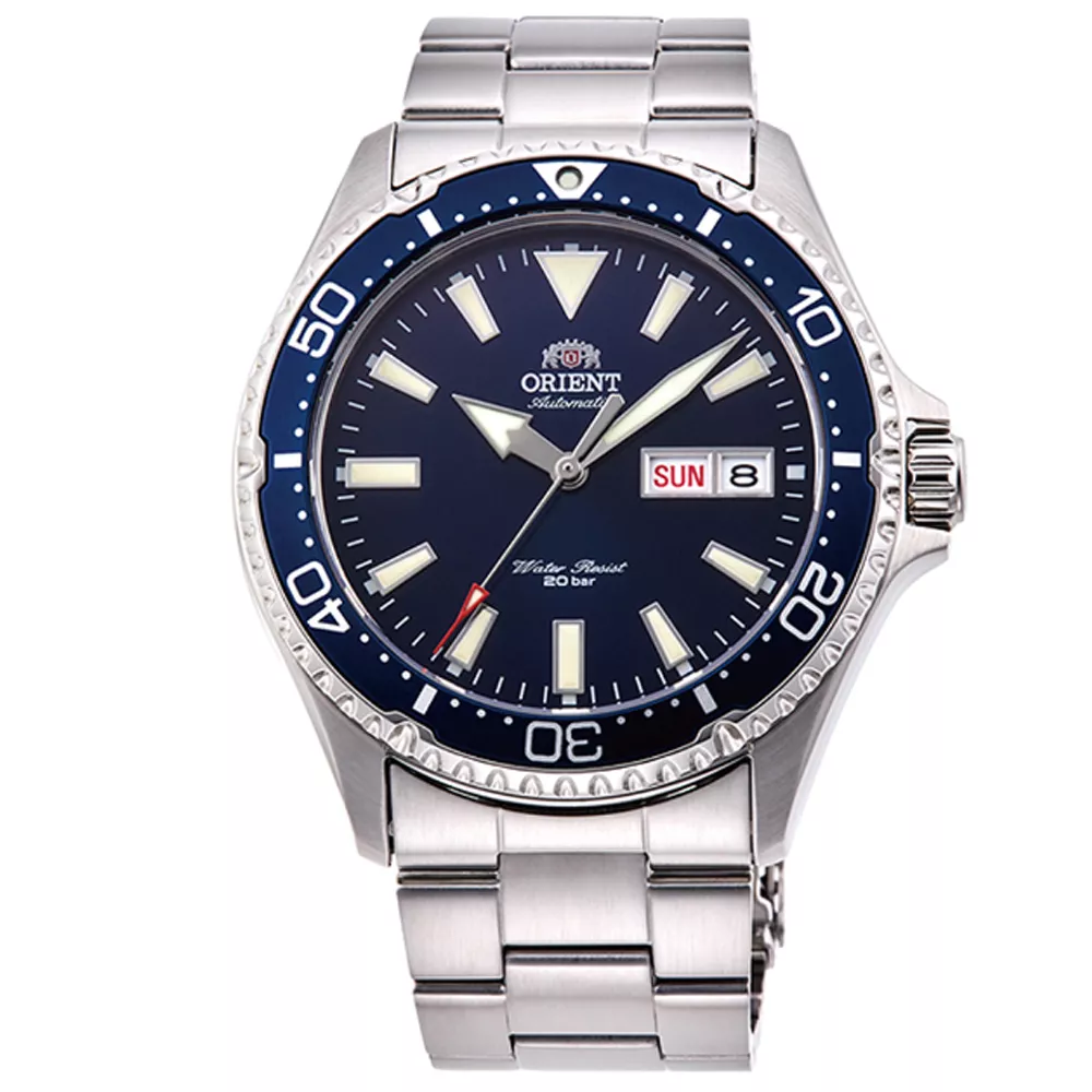 Mako, muški ručni sat japanskog časovničarskog brenda Orient. Ronilački model, automatik sa plavim brojčanikom i rotirajućom koronom u jednom smeru.