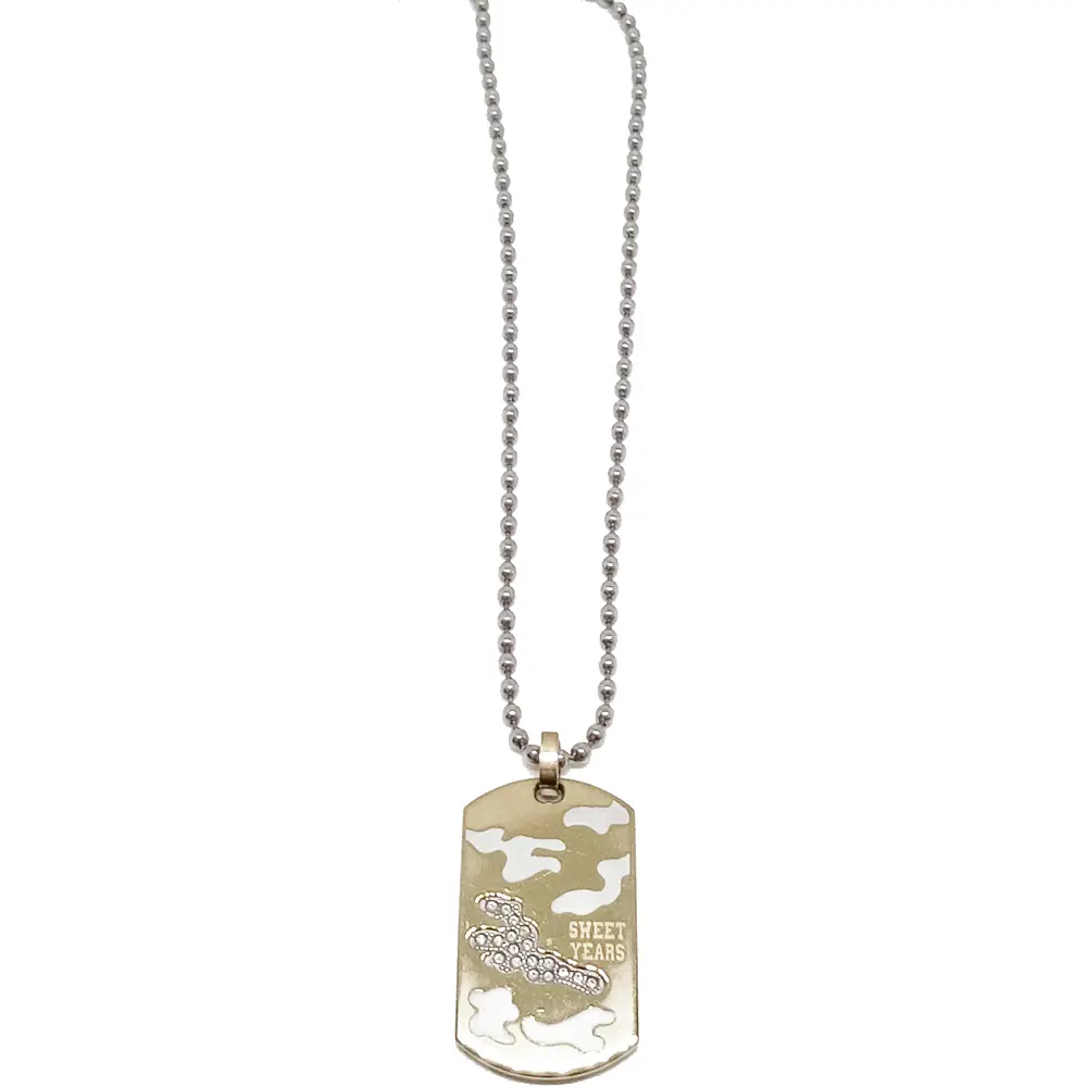 Ogrlica brenda Sweet Years iz kolekcije Military Chic, modernog je dizajna. Izrađena je od čelika sa militari dezenom koji doprinosi atraktivnosti ovog modela i čini ga zanimljivim aksesoarom uz svaki stil.