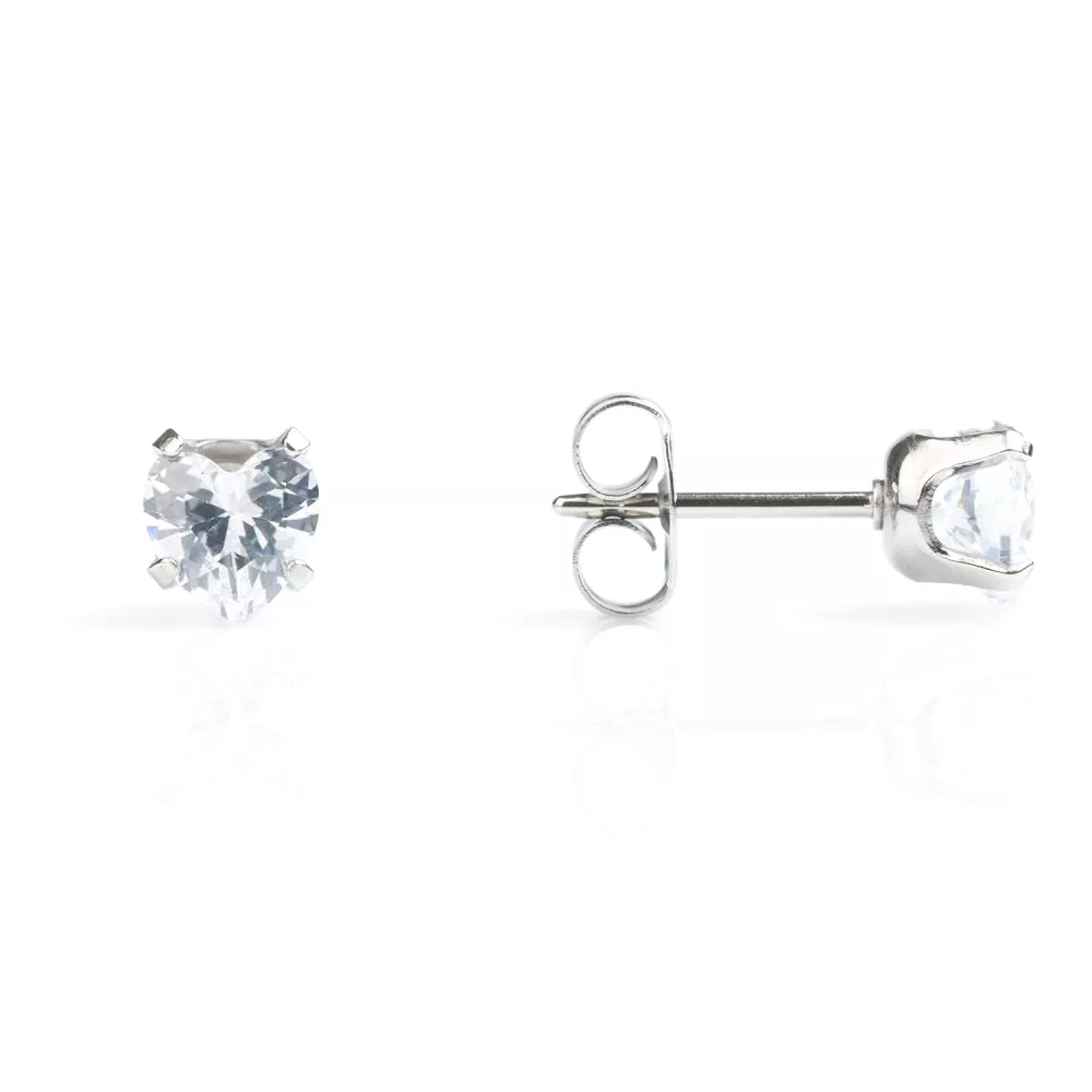 Ženske minđuše brenda Studex Sensitive sa cirkonom u obliku srca.