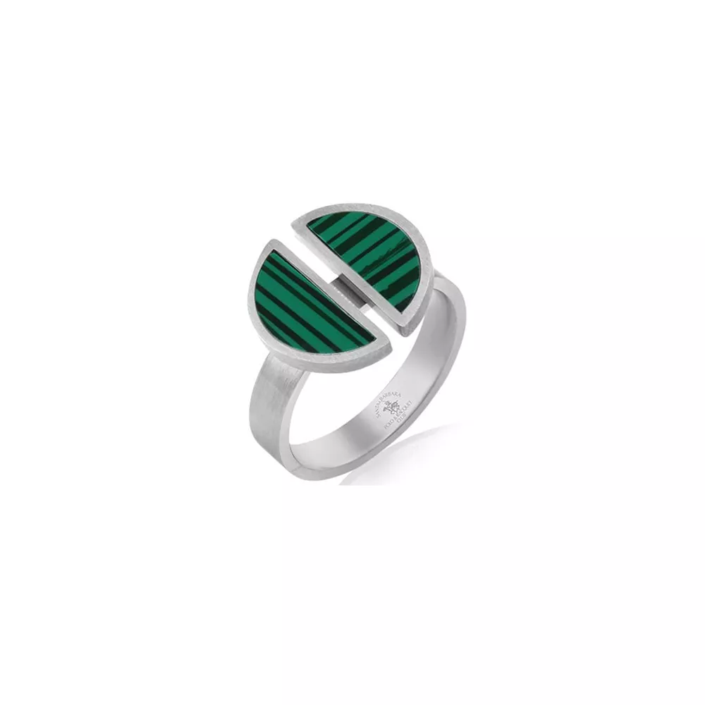 Santa Barbara Polo ženski prsten od nerđajućeg čelika u boji srebra sa zelenim krugom.