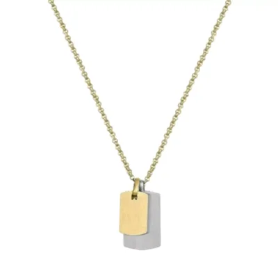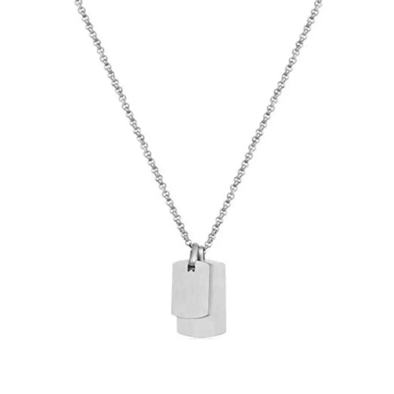 Muška ogrlica od nerđajućeg čelika u boji srebra sa privescima dve pločice.