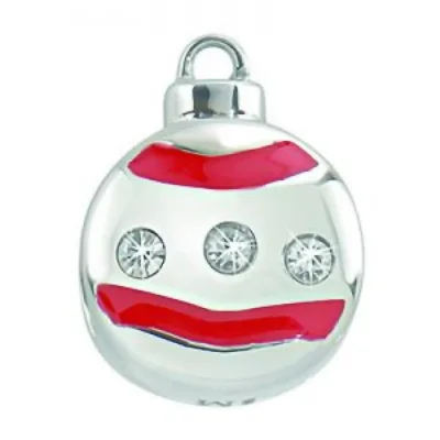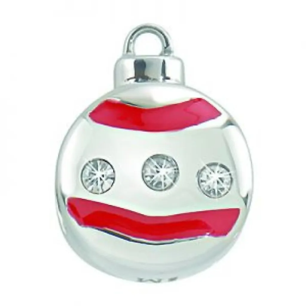 Privezak-perla od čelika sa motivom novogodišnjeg ukrasa.