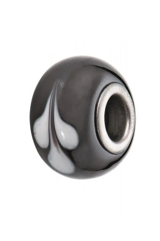 Privezak-perla od kristala crne boje sa belim detaljima.