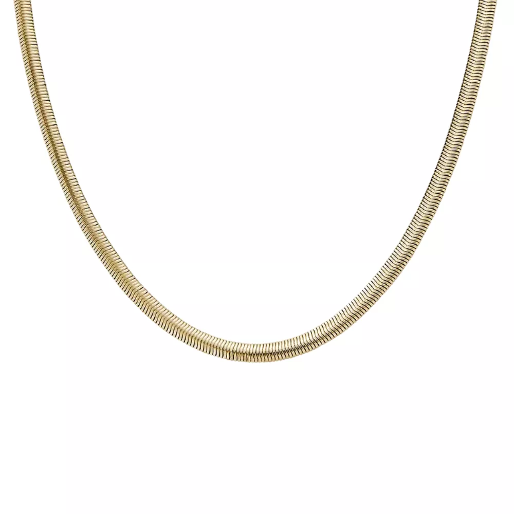 Ogrlica Moderne Stak unosi dizajnersku jednostavnost u vaš stil. Elegantan lančić od nerđajućeg čelika u zlatnom tonu, širine 3 mm, stvara sofisticiranu i modernu siluetu. Svestrana i profinjena—nosite je samostalno za uglađen izgled ili kombinujte u slojevima za dodatni efekat.