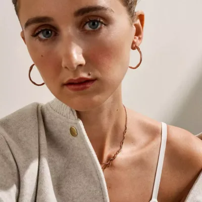 Profinjena jednostavnost, podignuta na viši nivo. Ove upečatljive hoop minđuše od nerđajućeg čelika iz naše Moderne Stak kolekcije savršeno balansiraju između modernog i bezvremenskog stila. Hoops od metala u rose gold tonovima, u svestranom veličini sa poliranim finišem, pažljivo su izrađene sa preciznošću.