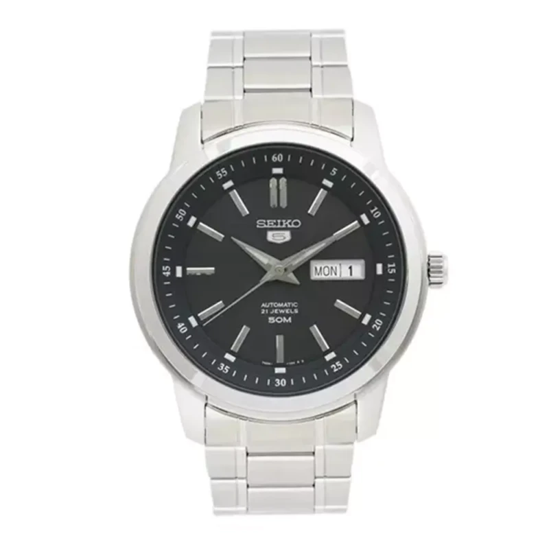 Klasičan, elegantan muški sat iz kolekcije Seiko 5 sa automatskim mehanizmom,calibra 7S26, koji ima 21 rubin,a rezerva snage mu je do 40h. Smešten je u čeličnom kućištu, providnom sa donje strane.Podržava ga metalna narukvica. Sat je pouzdan, sa odličnim odnosom cene i kvaliteta. Trajaće kroz generacije.