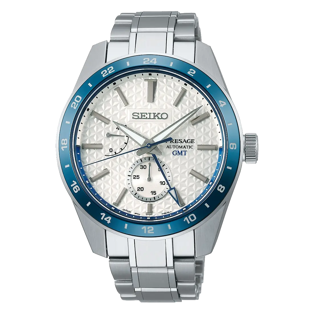 Sportsko elegantan muški sat prestižnog japanskog brenda Seiko iz kolekcije Presage. Kućište je od hirurškog nerđajućeg čelika u kome je smešten visokokvalitetan automatski mehanizam kalibra 6R64 sa 29 rubina i rezervom snage do 45h koja je predstavljena indikatorom koji se proteže od pozicije 09 h do pozicije 10h, na belom elegantnom brojčaniku fine teksture sa srebrnim satnim markerima. Sat podržava kvalitetna čelična narukvica. Idealan je za one muškarce koji vrednuju vrhunski kvalitet izrade koji traje generacijama. Dizajniran je za praktično međunarodno merenje vremena. Predstavlja ograničeno izdanje od 3.500 primeraka.