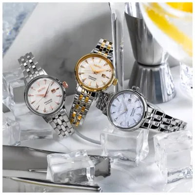 Elegantan,klasičan ženski sat iz Seikove prestižne kolekcije mehaničkih satova Presage. Kućište je od nerđajućeg čelika. U njemu kuca automatski mehanizam calibra 2R05 sa rezervom snage do 40h,sa mogućnošću ručnog navijanja. Preglednog je, belog dekorativnog brojčanika ukrašenog sa 8 dijamanata. Namenjen je ženama koje vrednuju kvalitet,tačnost,izdržljivost i luksuz. Podržava ga visokokvalitetna metalna narukvica sa sigurnosnom kopčom. Trajaće kroz generacije.