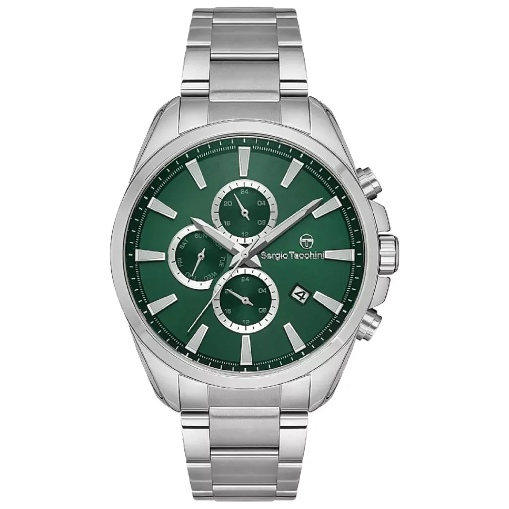 Muški sat brenda Sergio Tacchini, predstavlja pravi izazov za ljude slobodnog, mirnog duha. Moderan jednostavan sat sa metalnom narukvicom i zelenim brojčanikom može biti svakodnevna kombinacija, ali moze biti i prateći detalj za neke elegantne prilike.