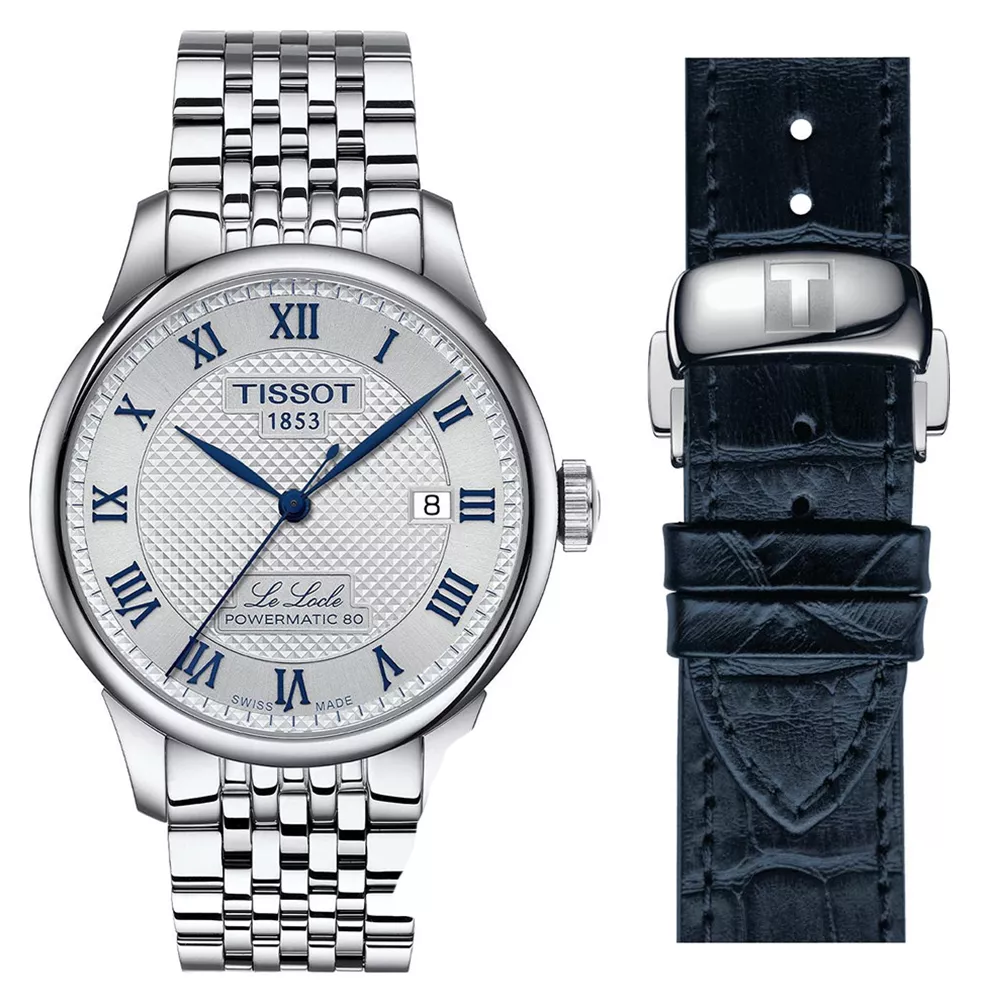 Tissot Le Locle Povermatic 80 set dolazi sa dve narukvice koje se mogu lako zameniti i bez alata zahvaljujuc´i sistemu za brzu zamenu. Elegantni ručni sat poseduje Povermatic mehanizam sa Nivachron oprugom otpornom na magnetna polja i rezervom snage do 80 sati. Set obeležava 20. godišnjicu postojanja kolekcije.