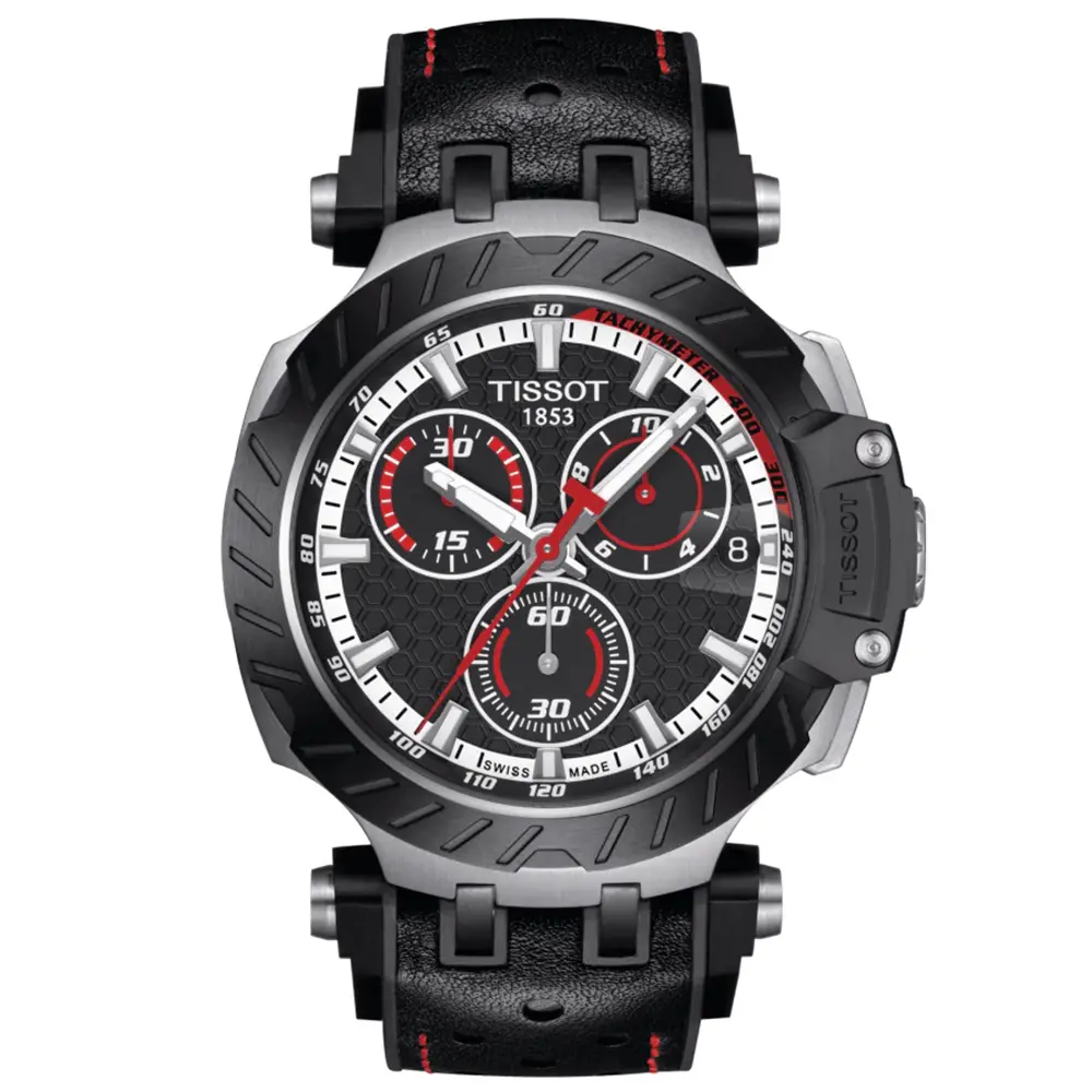 Muški ručni sat renomiranog švajcarskog proizvodjača satova iz kolekcije T-Race MotoGP. Ovaj model je iz edicije limitirane na 4999 primeraka i posvećen je jednom od najbržih i najuzbudljivijih sportova na svetu-moto trkama. Savršena kombinacija robusnog kućišta sportskog dizajna i neobičnog izgleda privlače pažnju ljubitelja sportskih aktivnosti koji cene lepotu i kvalitet. švajcarski kvarcni ETA G10.212 mehanizam kalibra 13 1/4''' sa hronografom i EOL funkcijom garantuje preciznost i visoke performanse ovog modela. Brojčanik sa tehimetarskom skalom je zaštićen safir kristal staklom otpornim na ogrebotine što omogućava odličnu preglednost.