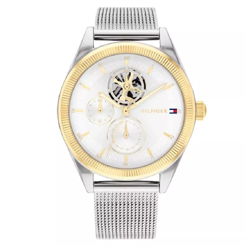 Tommy Hilfiger ženski model koji upotpunjuje svaku vašu kombinaciju. Sa svojim prefinjenim dizajnom i dvobojnim izgledom, ovaj sat je bezvremenski dodatak vašoj kolekciji nakita. Kuc´ište i narukvica srebrne boje, u kombinaciji sa sjajnim/svetlec´im kazaljkama, daju ovom satu elegantan i luksuzan izgled. Sa prečnikom od 38 mm, ovaj sat je suptilan i moderan dodatak za svaku priliku.