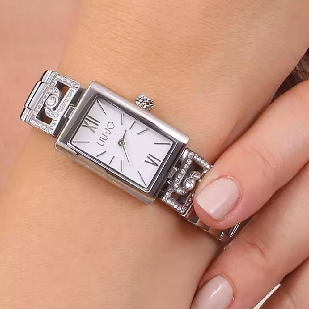 Sofisticirani model sata brenda Liu Jo pravougaonog je kućišta, dok posebnu dozu sofisticiranosti donosi narukvica gde se na samom pocetku nalazi logo sa cirkonima. Dimenzije brojčanika 28,5x20mm.