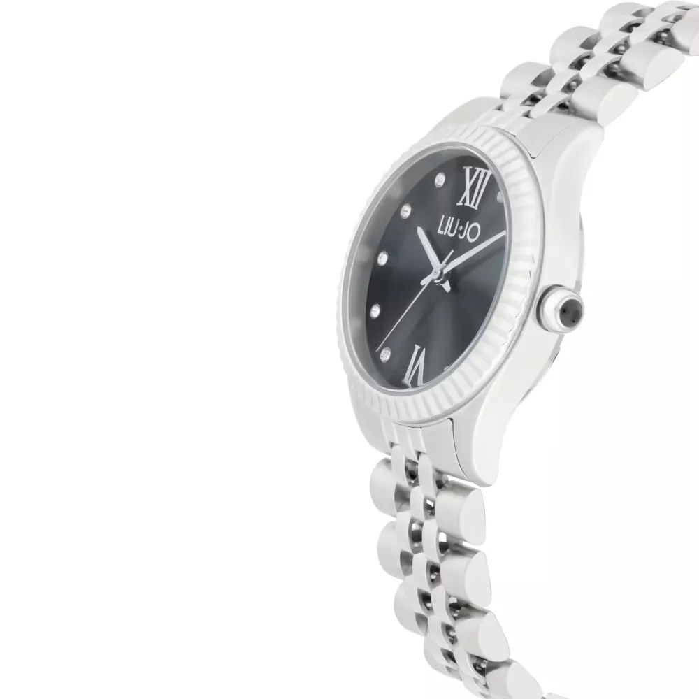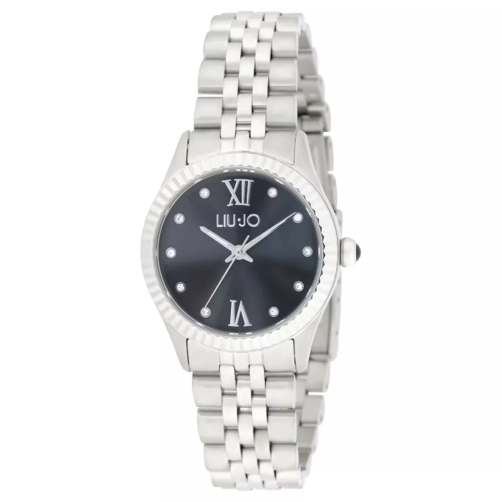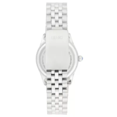 Ženski sat Liu Jo iz kolekcije Tiny. Sat sa 3 kazaljke i Miyota kvarcnim mehanizmom. Kućište je od čelika srebrne boje sa prečnikom od 30 mm. Staklo je mineralno. Boja brojčanika je crna sa indeksima. Narukvica je od čelika srebrne boje. Vodootpornost je 5 ATM.