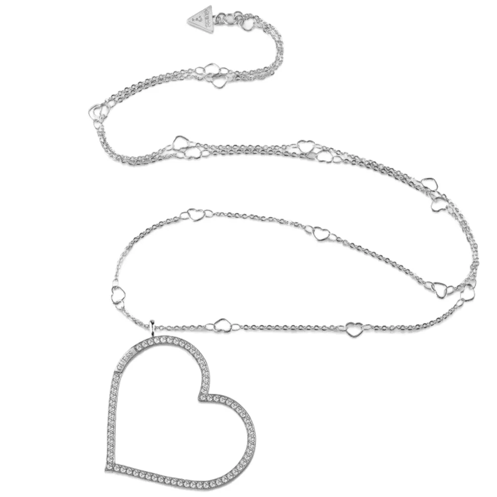 Ženska elegantna ogrlica Brenda Guess dizajnirana u boji srebra sa priveskom u obliku srebra sa Swarovski kristalima.
