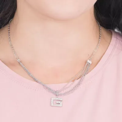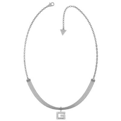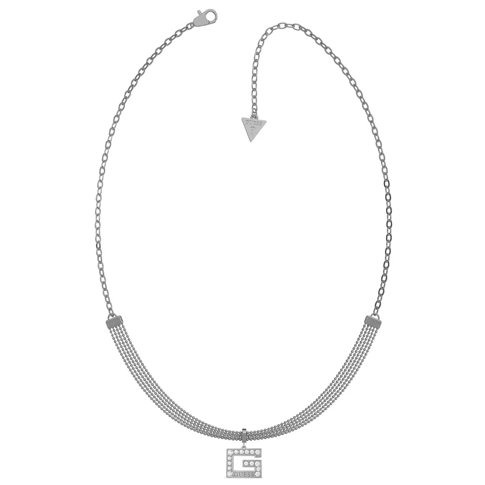 Elegantne ogrlica brenda Guess iz kolekcije G Multi Chain. Izrađene su od nerđajućeg čelika u srebrnoj boji.Viseće kuglice u kombinaciji sa Swarovski kristalima na slovu G dodatno naglašavaju efektnost ovog modela.
