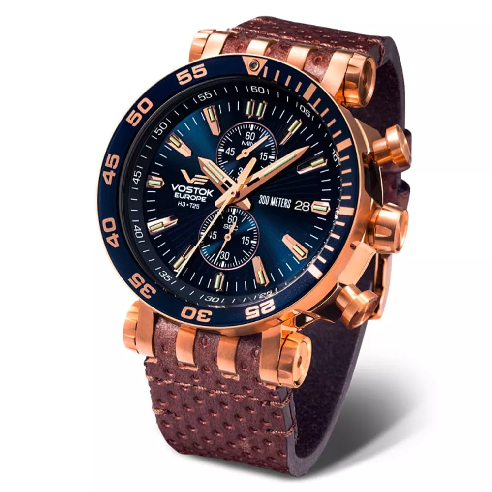 Sportski muški ručni sat Ruskog brenda Vostok iz kolekcije Energia, na braon kožnoj narukvici, sa brojčanikom plave boje. Poseduje diskretan datum koji je pozicioniran pored broja 3. Kazaljke i indeksi kao osvetljenje pri slaboj svetlosti imaju tricijumske tubice. Kućište je od čelika, otporan je na vodu do 300m. Ovi satovi su dizajnirani za korišćenje u različitim ekstremnim aktivnostima, od dubokog ronjenja do istraživanja svemira. Automatski relej za otpuštanje helijuma integrisan je u jednosmerni ventil sa oprugom koji se aktivira kada razlika između unutrašnjeg i spoljašnjeg pritiska dođe do kritičnog nivoa. Ova funkcija je korisna za ronioce koji rade na velikim dubinama. Sat dolazi u setu sa slilikonskom narukvicom kao i alatom za zamenu koji su smešteni u plastičnu kutiju koja je otporna na vodu i udarce.