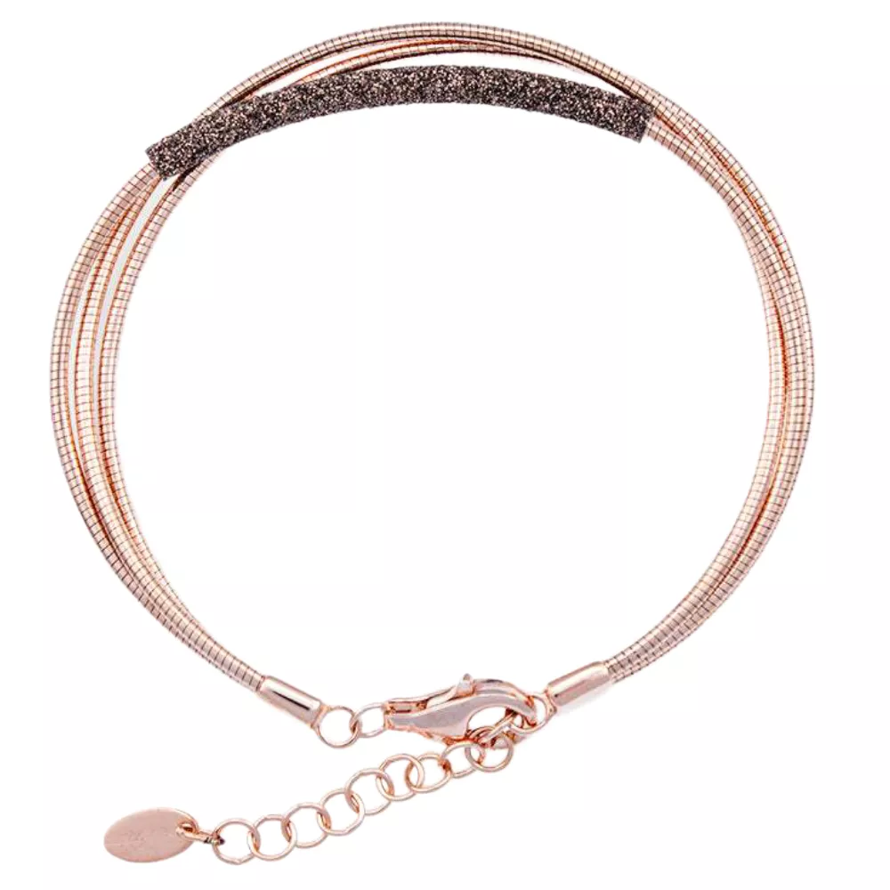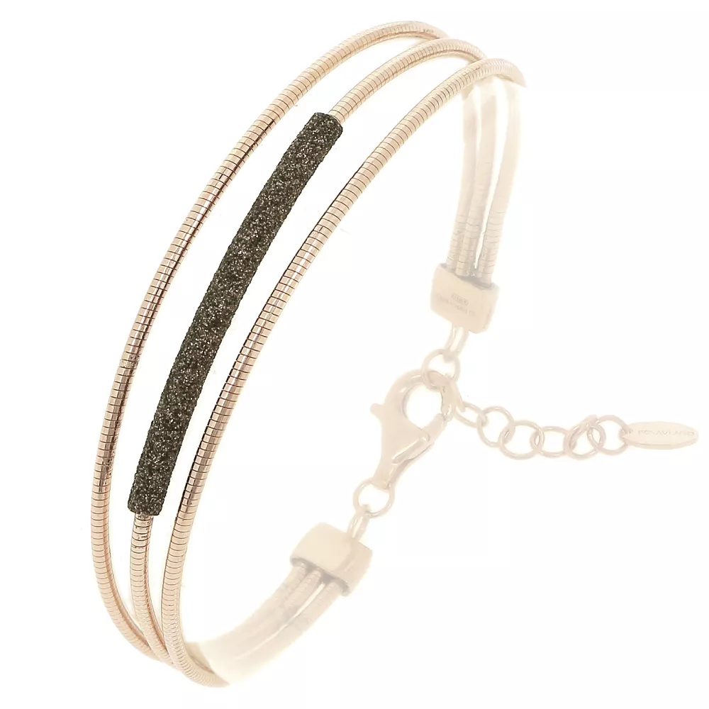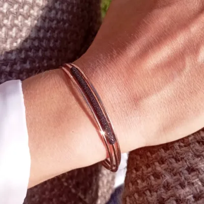 Pesavento DNA narukvica predstavlja spoj savremene elegancije i tehničke preciznosti. Izrađena je od srebra 925 sa luksuznom roze pozlatom (galvanski tretman), a dolazi iz kultne DNA kolekcije, poznate po svojoj svilenkastoj teksturi i profinjenom izgledu. Poseban vizuelni efekat postignut je uz pomoć niti delimično prekrivenih materijalom Polvere di Sogni – svetlucavim bronzanim ugljeničnim prahom, dobijenim naprednom nanotehnologijom iz prirodnih mineralnih materijala. Ove mikro-čestice heksagonalnog oblika pojačavaju refleksiju svetlosti, dajući nakitu profinjeni sjaj pri svakom pokretu. Dužine od 180 do 210 mm, narukvica se nežno obavija oko zgloba, pružajući udobnost i upečatljiv vizuelni efekat. Idealan je izbor za sve koji cene italijanski dizajn i modernu eleganciju.