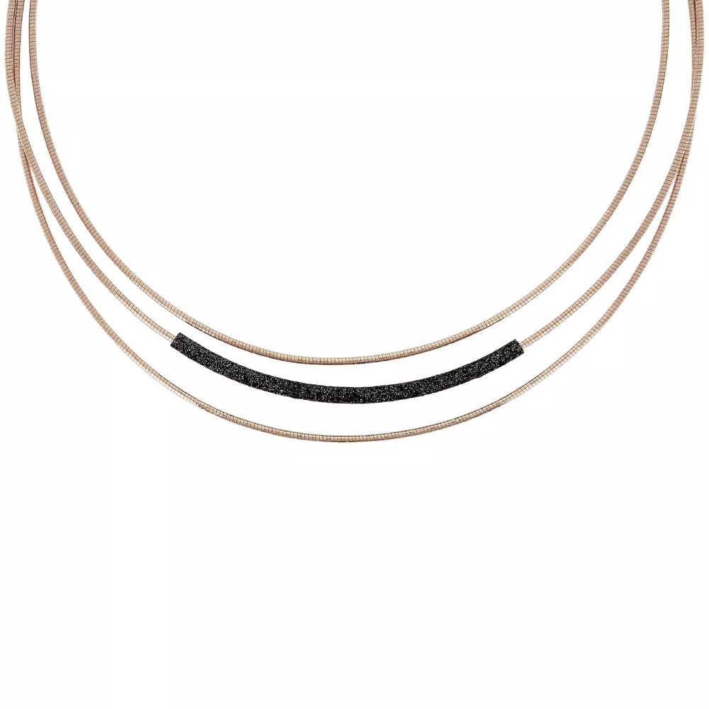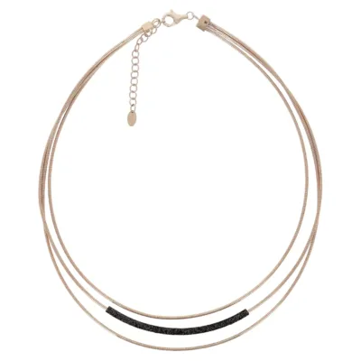 Lanac Pesavento ručno je izrađen od srebra 925 sa ružičastim pozlaćenim premazom, u kombinaciji sa tamnosmeđom Polvere di Sogni završnicom. Reč je o originalnom dizajnu brenda Pesavento, iz kolekcije DNA. Dužina ogrlice iznosi 42 cm, a karakteriše je prepoznatljiv savremeni izgled sa suptilnim luksuznim detaljima.