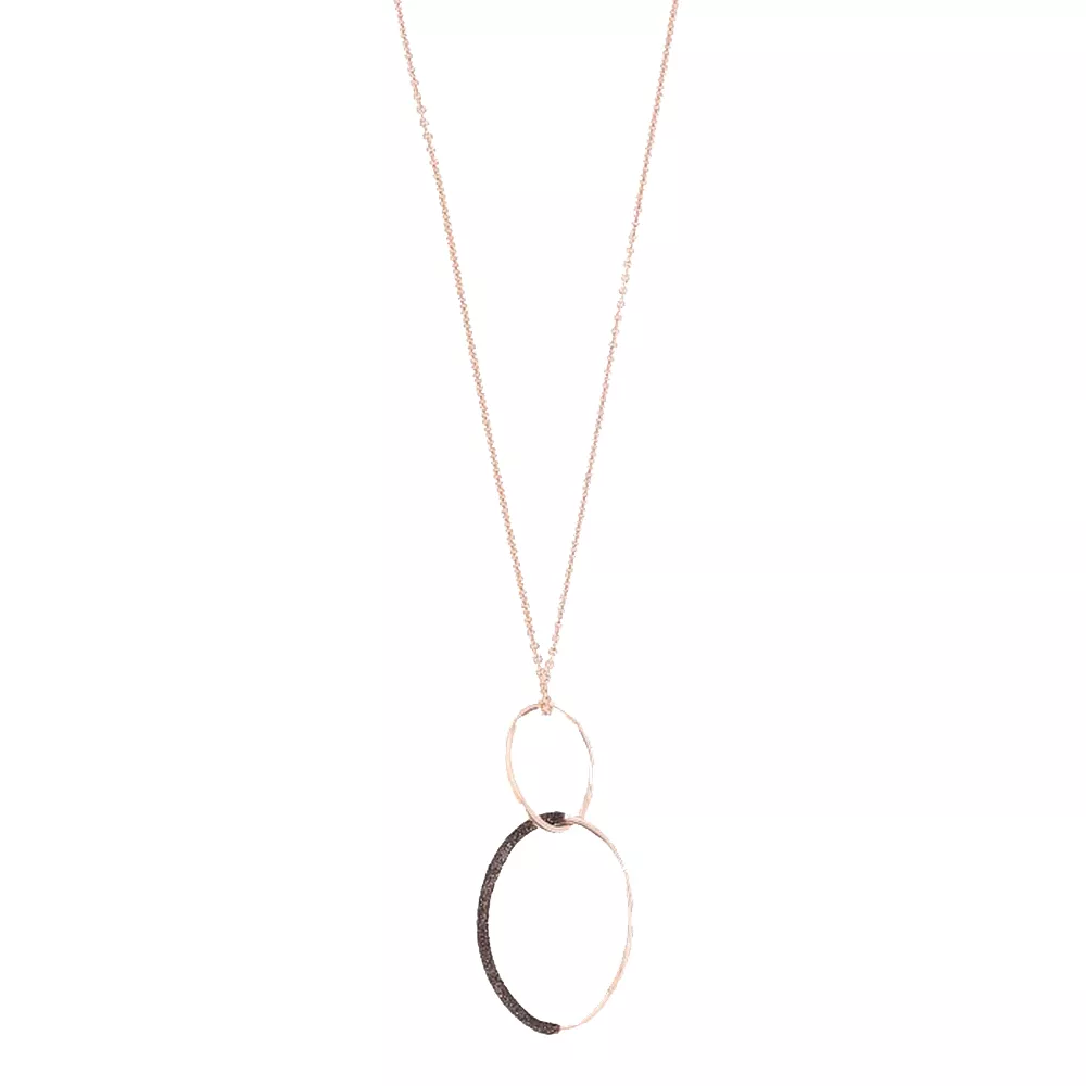 Magična ogrlica Pesavento sa privescima u obliku elipse napravljena je od srebra i prekrivena dijamantskom prašinom u sivoj nijansi. Jedinstvena i upečatljiva, namenjena je ženama koje vole da se istaknu.