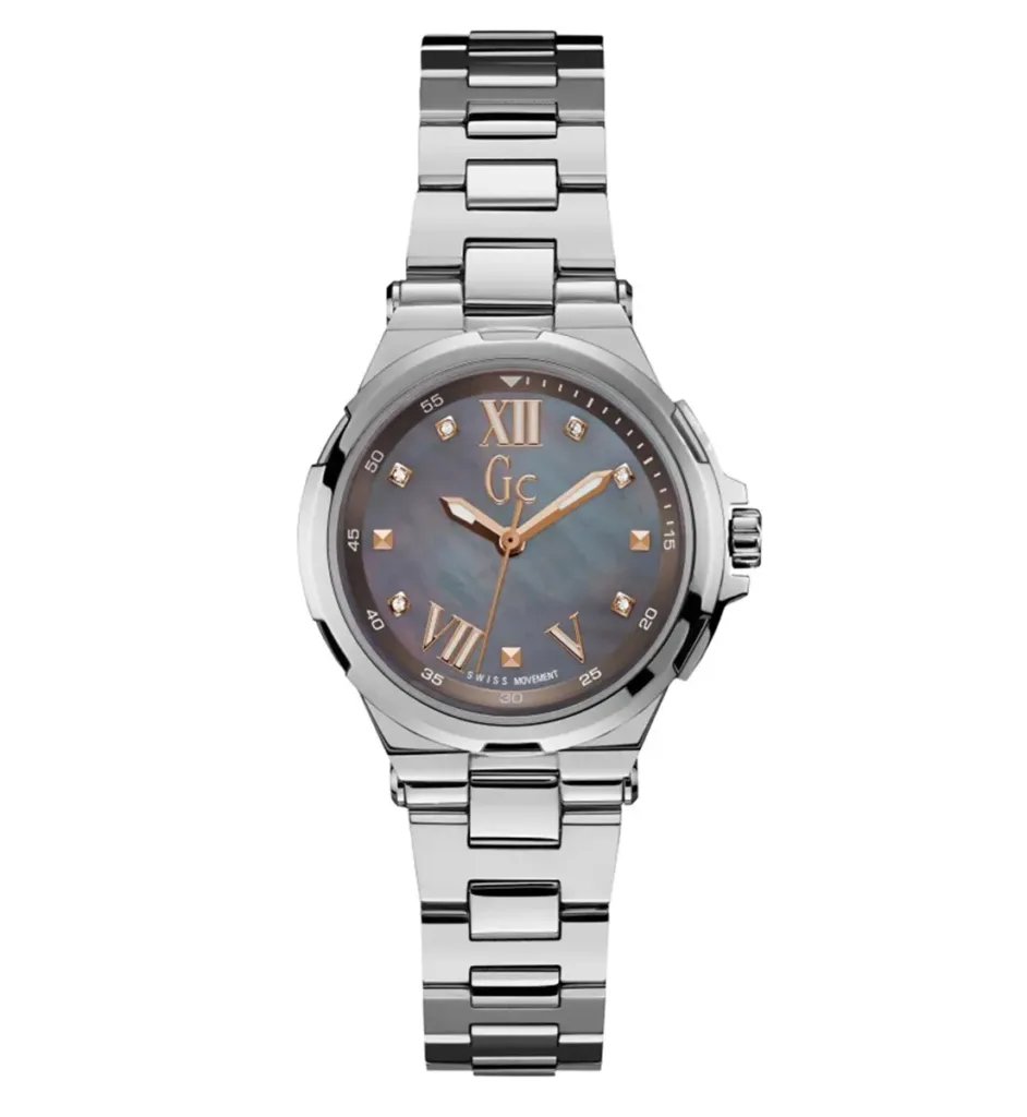 Ženski sat na kvalitetnoj čeličnoj narukvici svedenog i nenametljivog dizajna benda GC iz kolekcije Structura.Ono što izdvaja ovaj model od ostalih su precizno rasporedjeni kristali unutar brojčanika na tamnoj pozadini. Model je prikladan za sve odevne kombinacije,GC u svom maniru uspeva da dočara eleganciju na drugačiji način