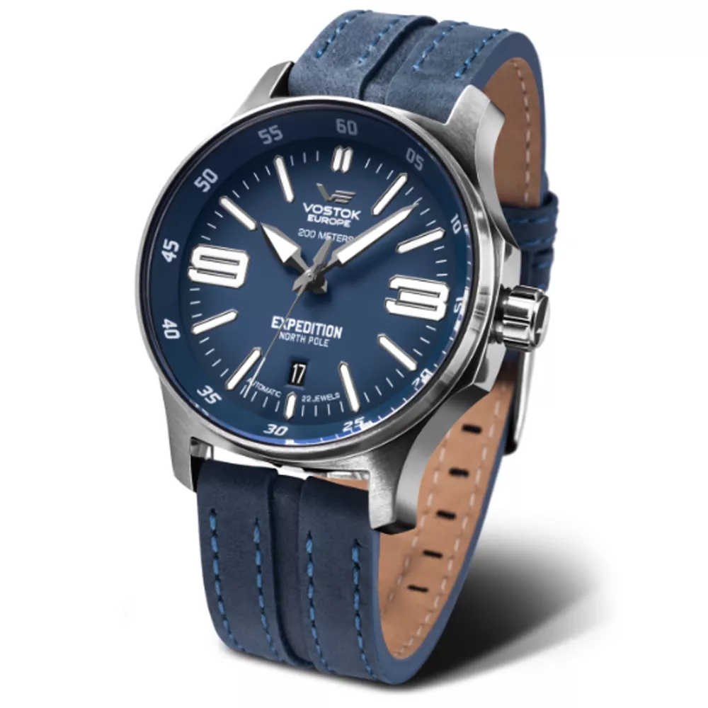 Elegantni muški ručni sat Ruskog brenda Vostok koji nosi naziv Expedition North Pole posvećen avanturistima. Kućište sata je od nerđajućeg čelika. Brojčanik je plave boje, sa iluminacijom koja pruža odliču čitljivost pri slabom osvetljenju. Narukvica je kožna plave boje koja dodatno pruža udobnost pri nošenju. Sat je vanvremenskog dizajna i namanjen je muškarcima koji neguju klasičan i sportski stil.