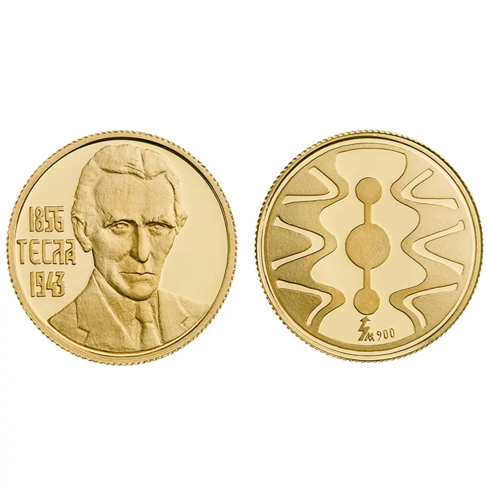 Zlatnik izrađen od 22ct, finoće 900/1000 u specijalnoj pruf tehnici sa visokim sjajem i mat reljefnim detaljima. Kompletna izrada se odvija u zlatari Majdanpek. Visok kvalitet izrade zlatnika predstavlja savršen poklon u prilikama kao što su krštenja, slave, proslave, rođendani… Zlatnik je poklon koji odoleva vremenu i ima jaku simboliku.Zlatnici se pakuju u specijalnoj plastičnoj kapsuli i dolaze zajedno sa sertifikatom o autentičnosti.Ovaj model je predstavljen motivom jednog od najpoznatijih srpskih i svetskih naučnika, Nikolom Teslom. Na prednjoj strani se nalazi motiv Nikole Tesle sa godinom rođenja i smrti, dok je na poleđini prikazan motiv strujnog kola.