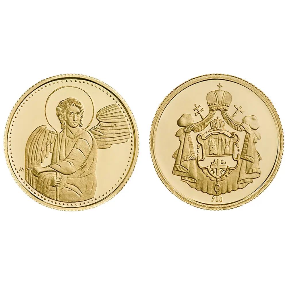 Zlatnik izrađen od 22ct, finoće 900/1000 u specijalnoj pruf tehnici sa visokim sjajem i mat reljefnim detaljima. Kompletna izrada se odvija u zlatari Majdanpek. Visok kvalitet izrade zlatnika predstavlja savršen poklon u prilikama kao što su krštenja, slave, proslave, rođendani…Zlatnik je poklon koji odoleva vremenu i ima jaku simboliku.Zlatnici se pakuju u specijalnoj plastičnoj kapsuli i dolaze zajedno sa sertifikatom o autentičnosti.Ovaj model je predstavljen motivom Belog Anđela, poznate freske koja se nalazi u manastiru Mileševa. Na prednjoj strani se nalazi motiv Belog Anđela, dok je na poleđini grb Srpske Pravoslavne Crkve.